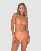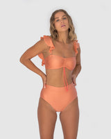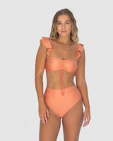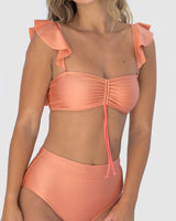 Style notes :  Bikini top in Peach with Pomegranate front ties.